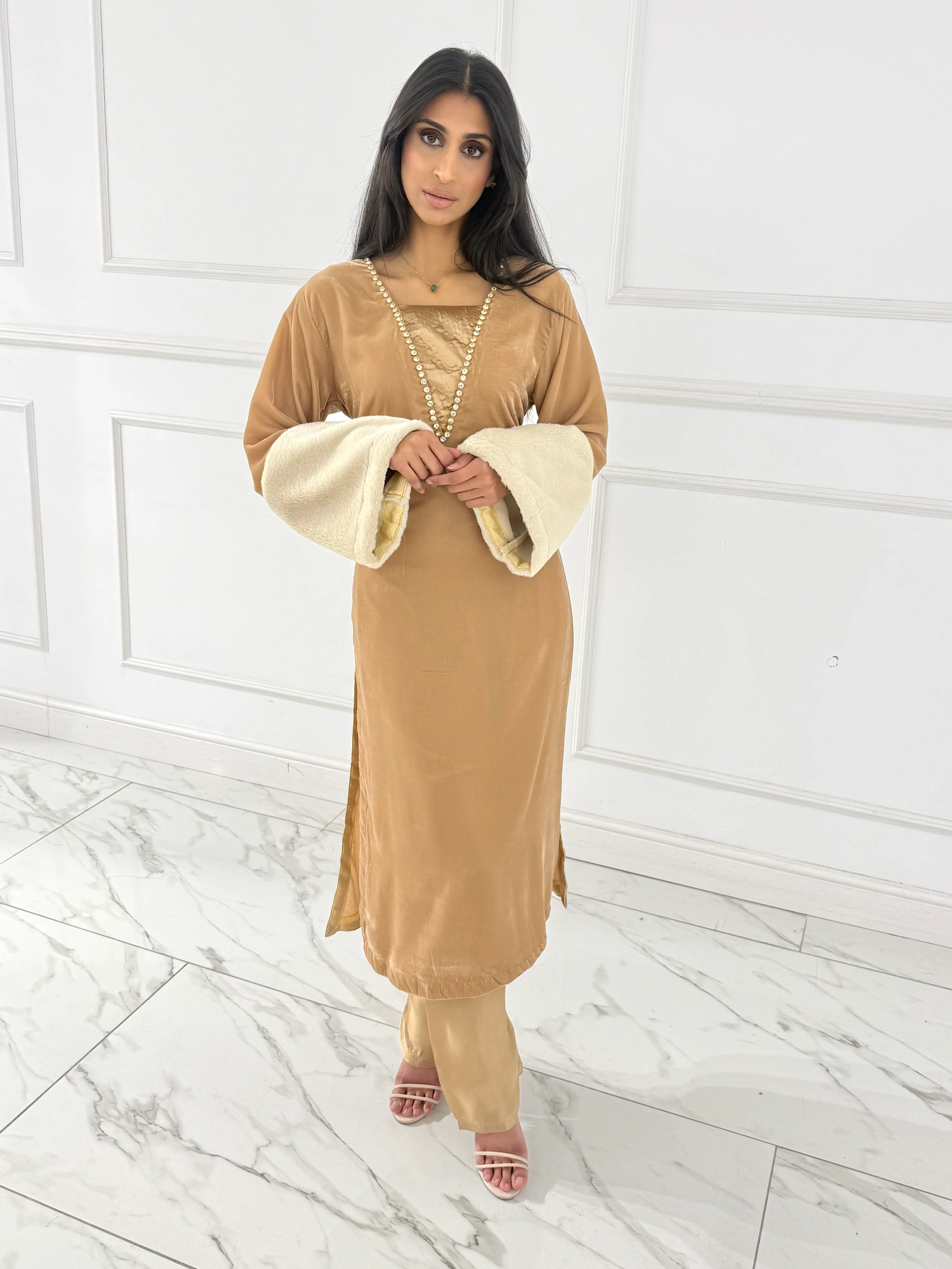 Indulge in luxury with our ABR-08 Readymade Velvet Collection 2026. Crafted from sumptuous velvet fabric, this exquisite piece combines timeless elegance with contemporary design. Perfect for special occasions or elevating your everyday wardrobe, the rich texture and sophisticated drape create an effortlessly glamorous silhouette. Available in our signature readymade fit, it offers comfort without compromising on style. Experience the opulence of premium velvet tailoring that makes a statement wherever you go.