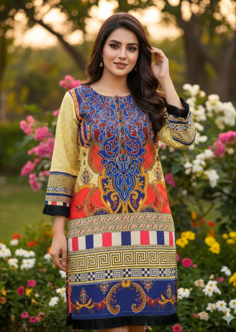 Cotton A Line shirt with Block print. Buttons may vary in design.