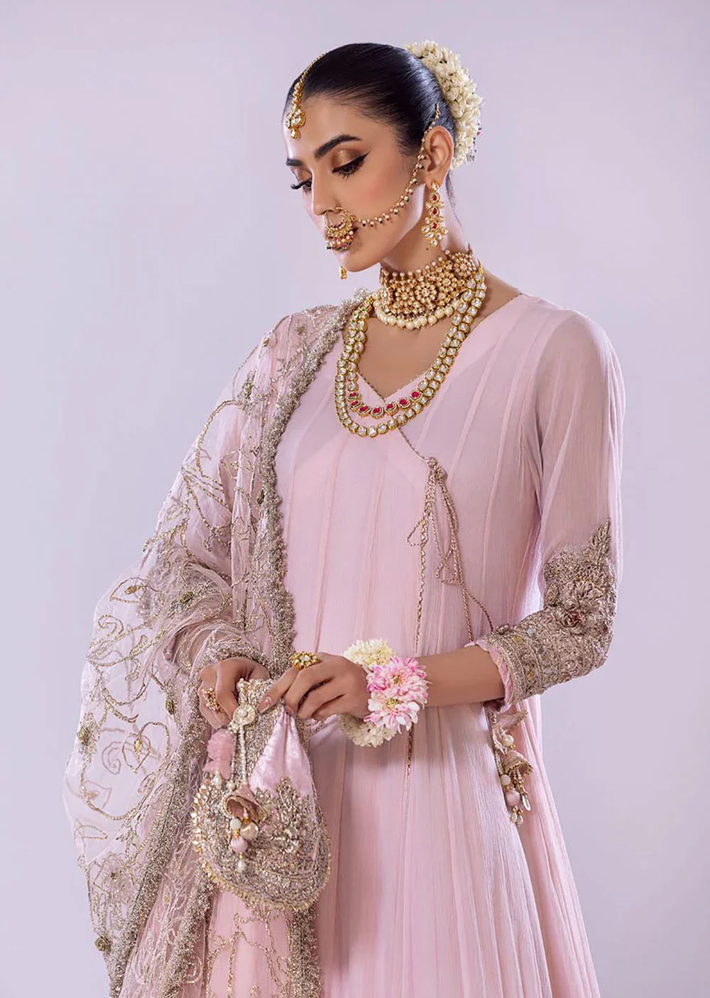 - Shirt: Pure Crinkle Chiffon (Hand Embroidered with Kora, Dabka, Gotta etc)