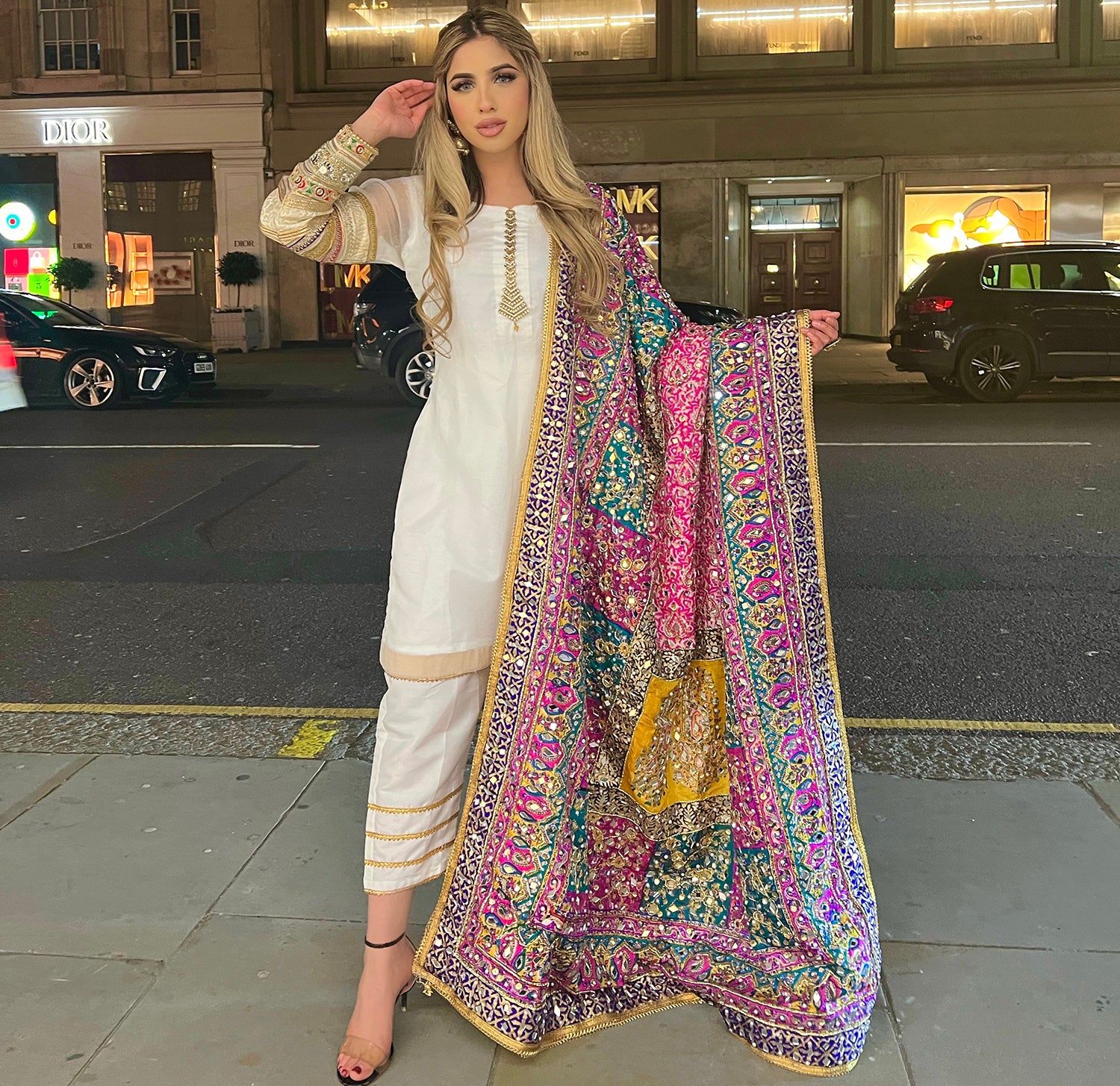 Please note there is no exchange or refunds on these products as they are made on order. The duppatta is heavily decorated with mirrors, it is normal for the mirrors to become displaced or to fall due to the nature of the work.